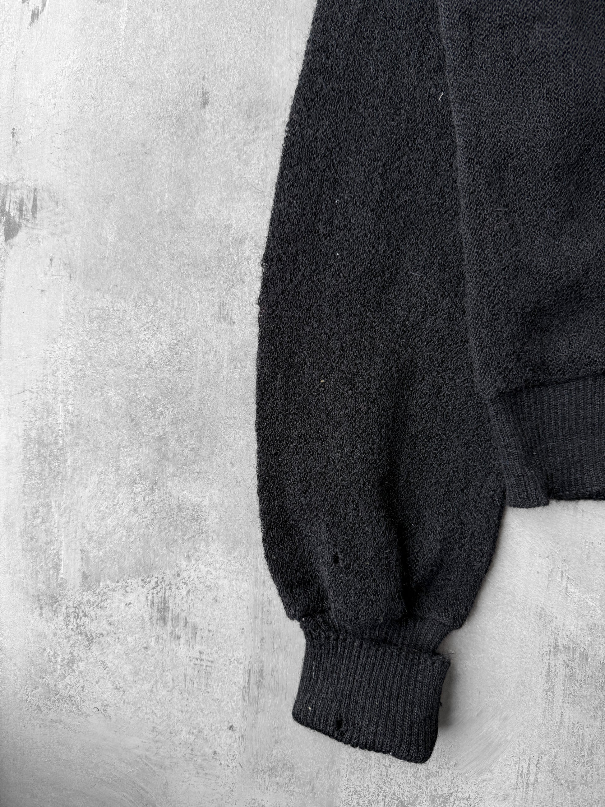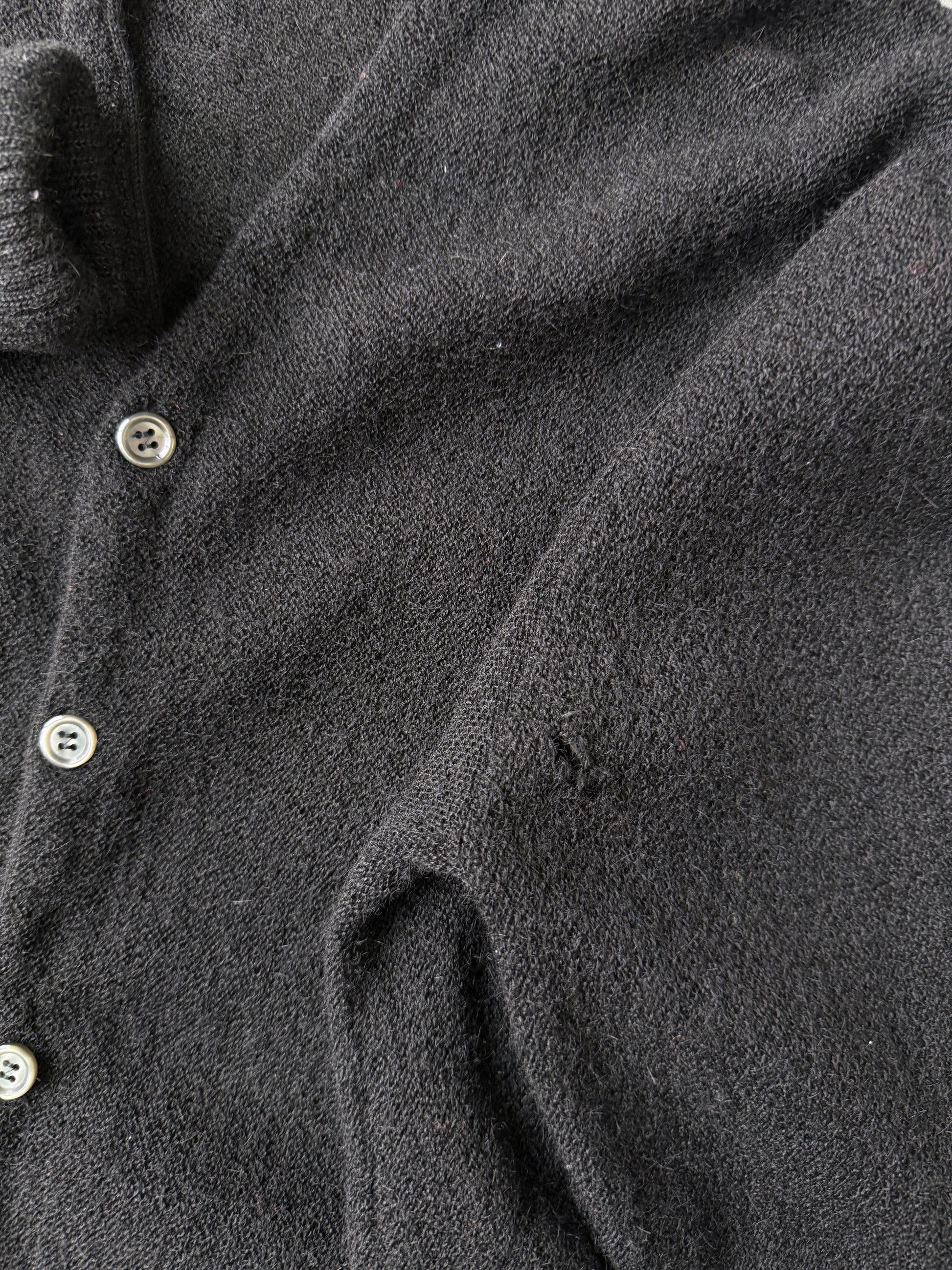 Black Alpaca V-Neck Cardigan 70's - Medium