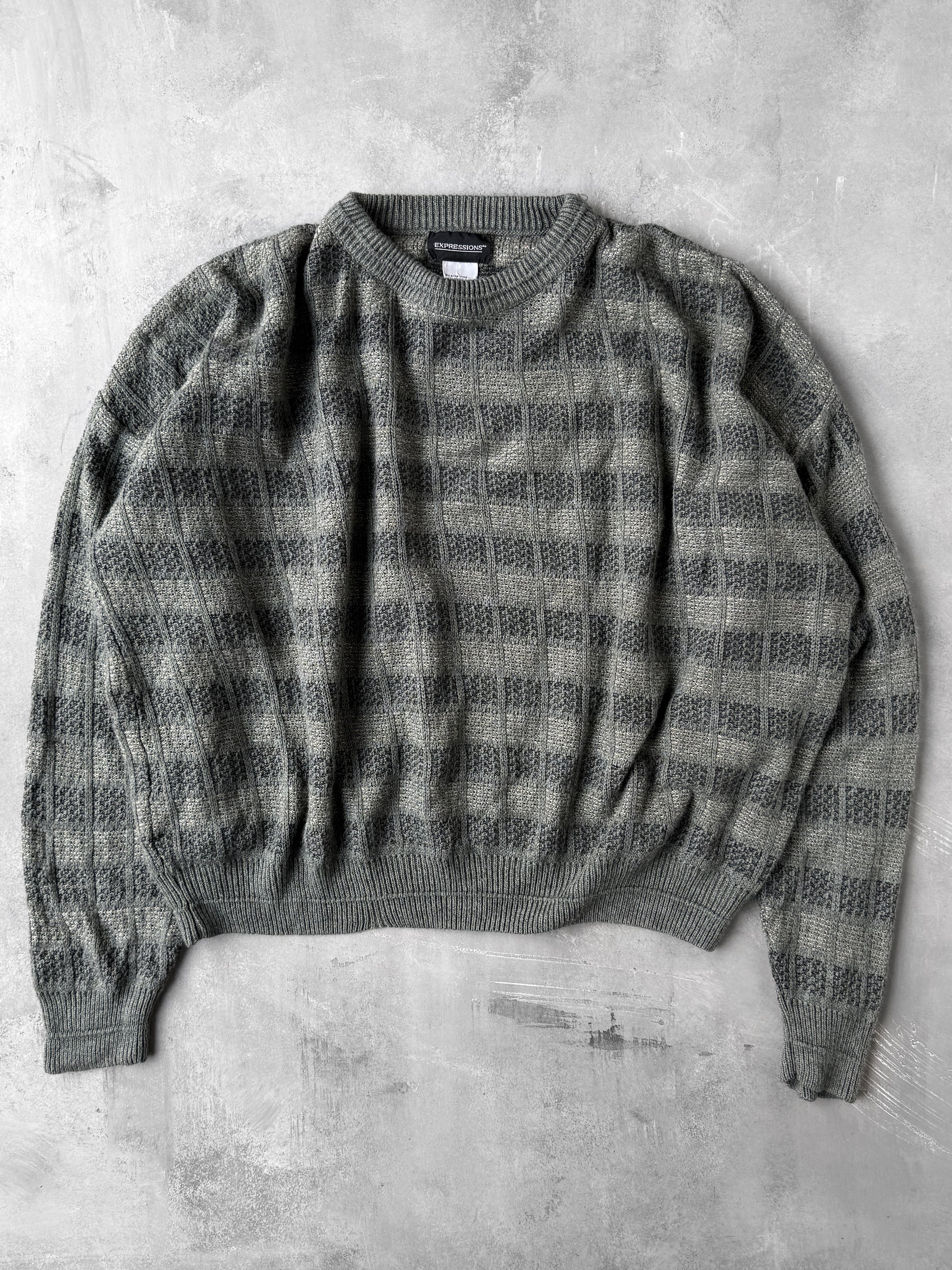 Gray Patterned Sweater Y2K - XL