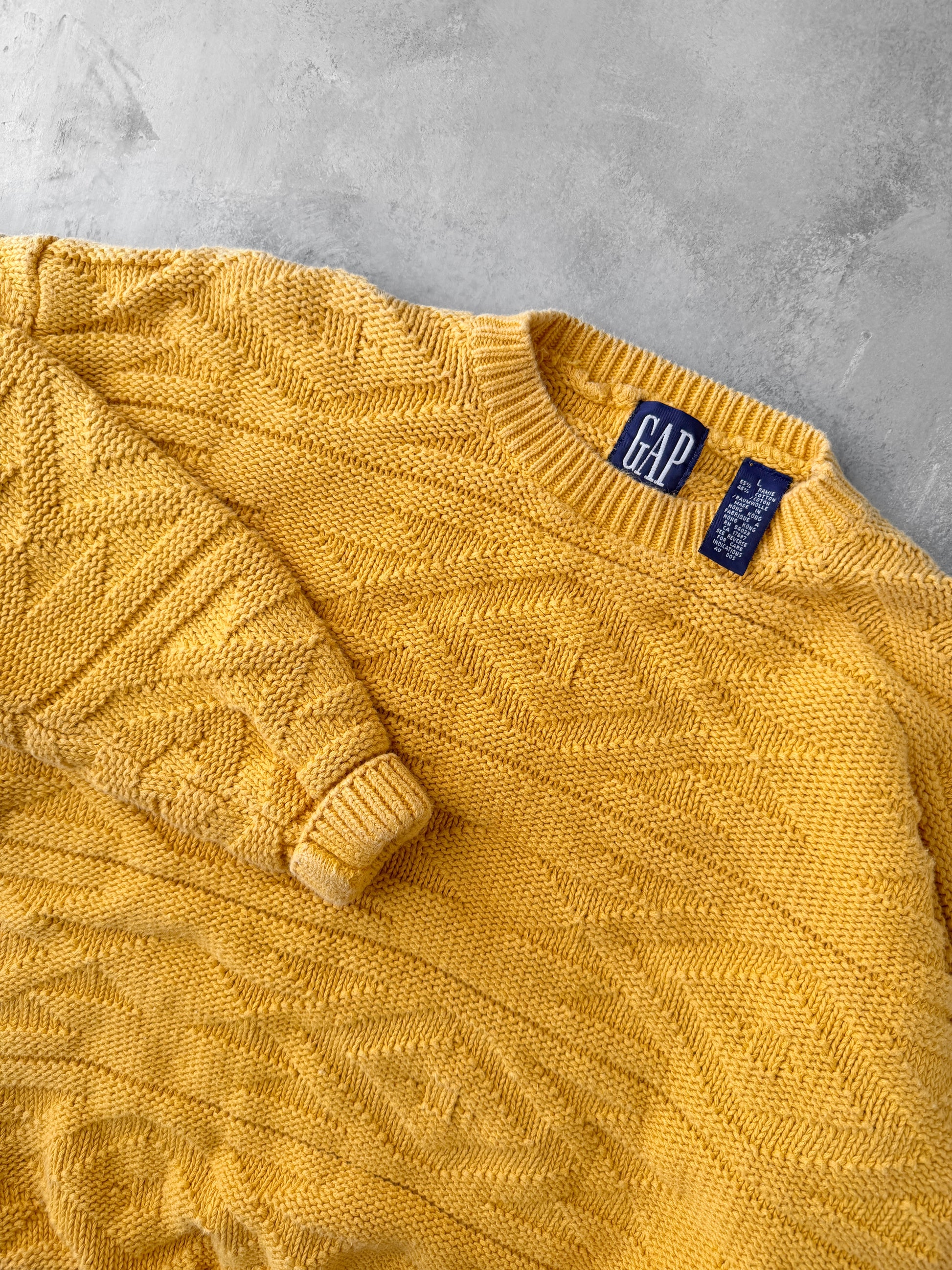 Mustard Yellow Textured Sweater Y2K - Large