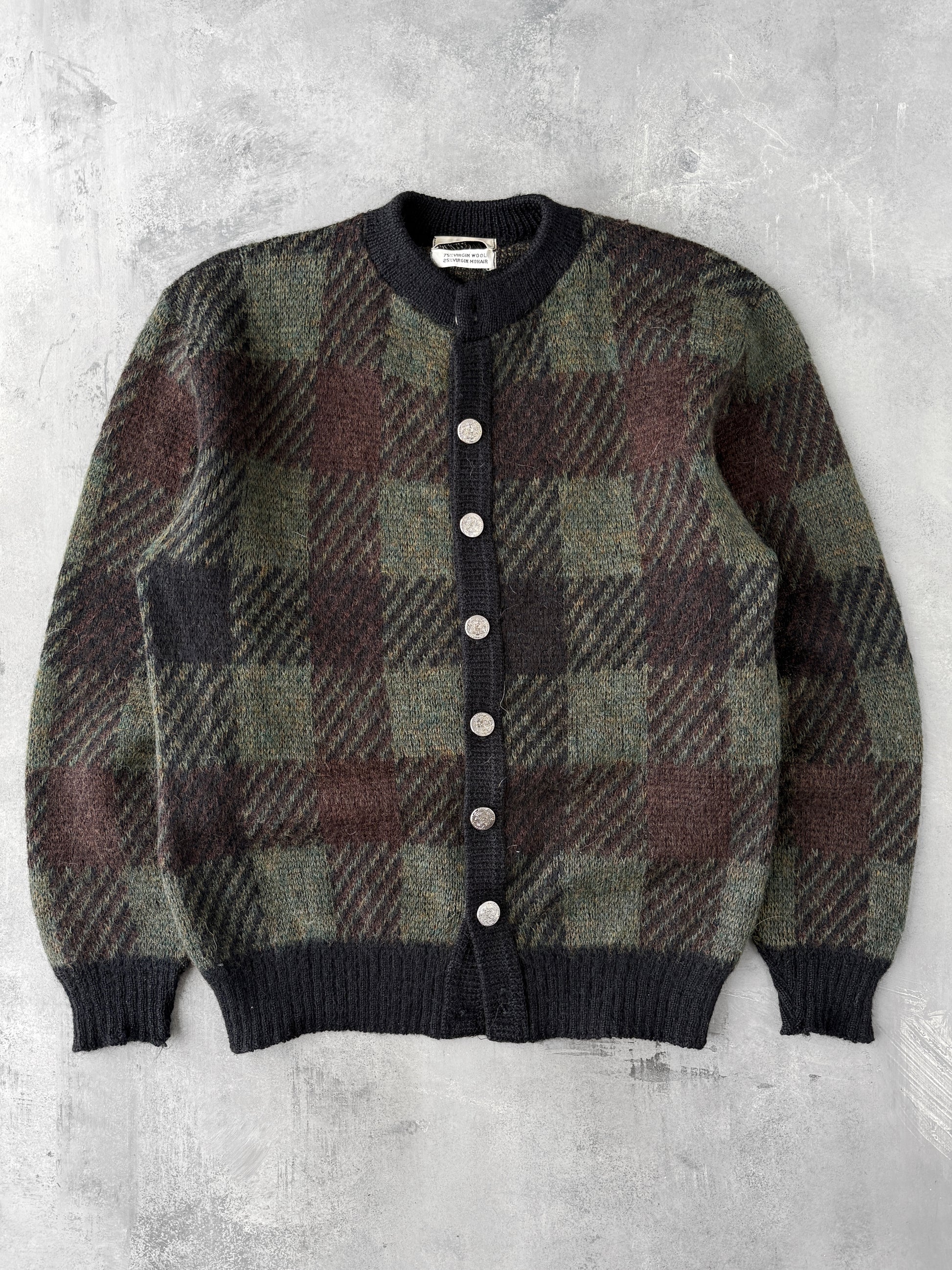 Plaid Mohair-Blend Cardigan 60's - Medium